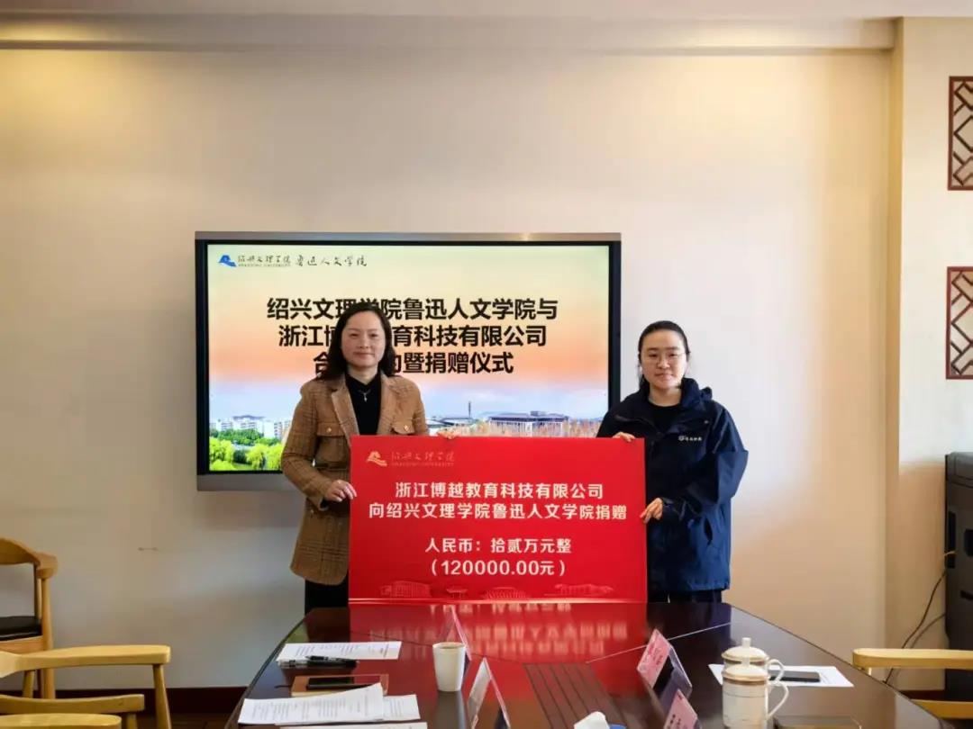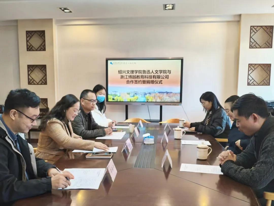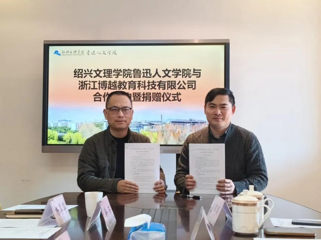 为进一步推动高校人才培养与校企合作的深度融合,11月21日上午,绍兴文理学院鲁迅人文学院与浙江博越教育科技有限公司合作签约暨捐赠仪式在学院会议室顺利举行。
