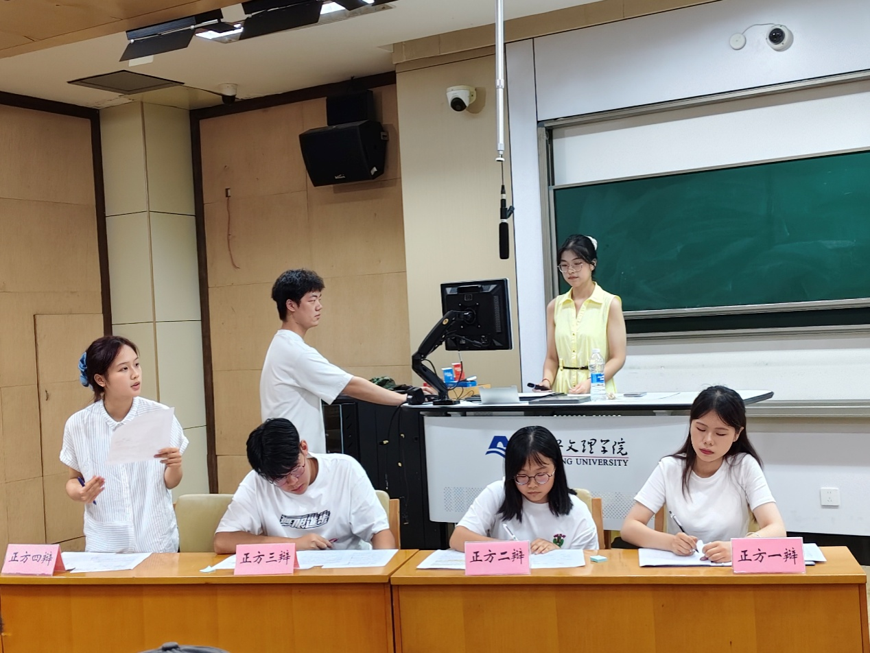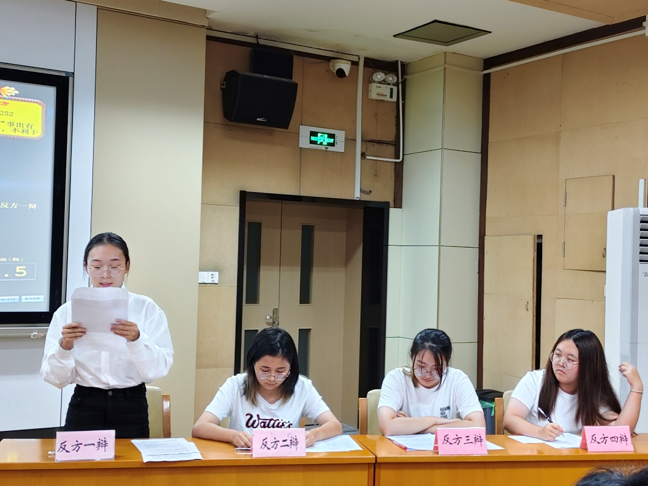 10月8日晚上,绍兴文理学院鲁迅人文学院第二场新生辩论赛初赛在南山校区举办,来自汉语言文学(师范)专业和历史学(师范)专业的4支队伍参赛。本次辩论赛由童钰莹主持,评委由徐浩然,章弈伦,王越优,孙艺嘉,曾柏蕾担任。