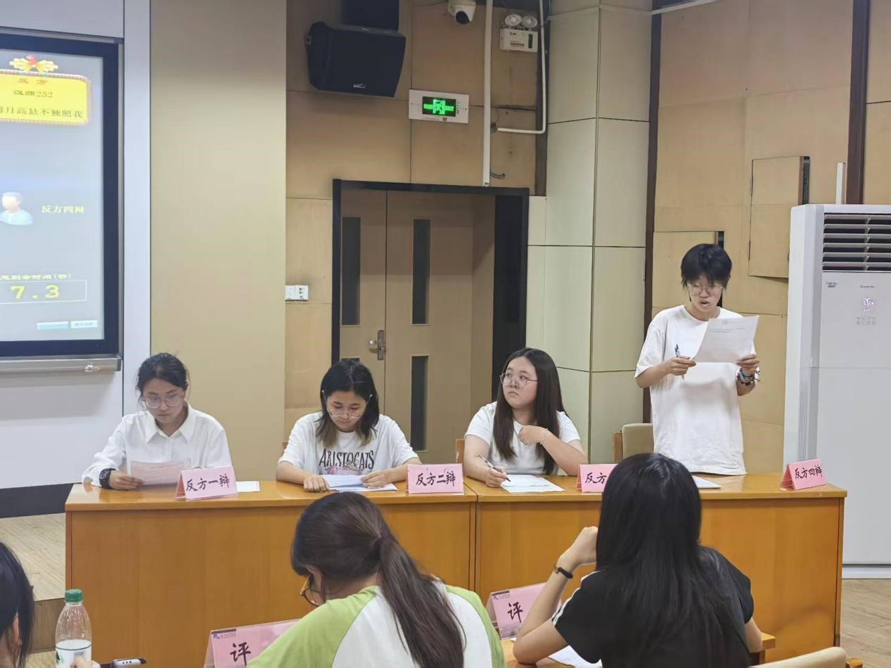 第一场比赛由正方汉师251班与反方汉师255班就“梗文化促进还是阻碍了交流”这一论题展开辩论。正方秉持“梗文化促进了交流”的观点,通过分析年轻人在网上使用网络热梗的普遍现象,指出梗文化不仅降低了交流成本,提升了信息传递效率,拉近了人际距离,还促进人与人之间的深度交流。反方则持“梗文化阻碍了交流”的观点,认为梗文化造成了语言的贫瘠和思想惰性,制造了圈层隔阂。他们列举网络烂梗和不适宜的网络热梗使用等情形,再次论证梗文化会侵蚀深度交流能力的观点。最终,反方汉师255班在此次辩论中胜出,正方汉师251班姜可鑫同学荣获“最佳辩手”的称号。赛后,由评委章弈伦对比赛进行点评,强调在结辩时要控制语速,建议双方都要举出更有代表性的实例和关键论点。