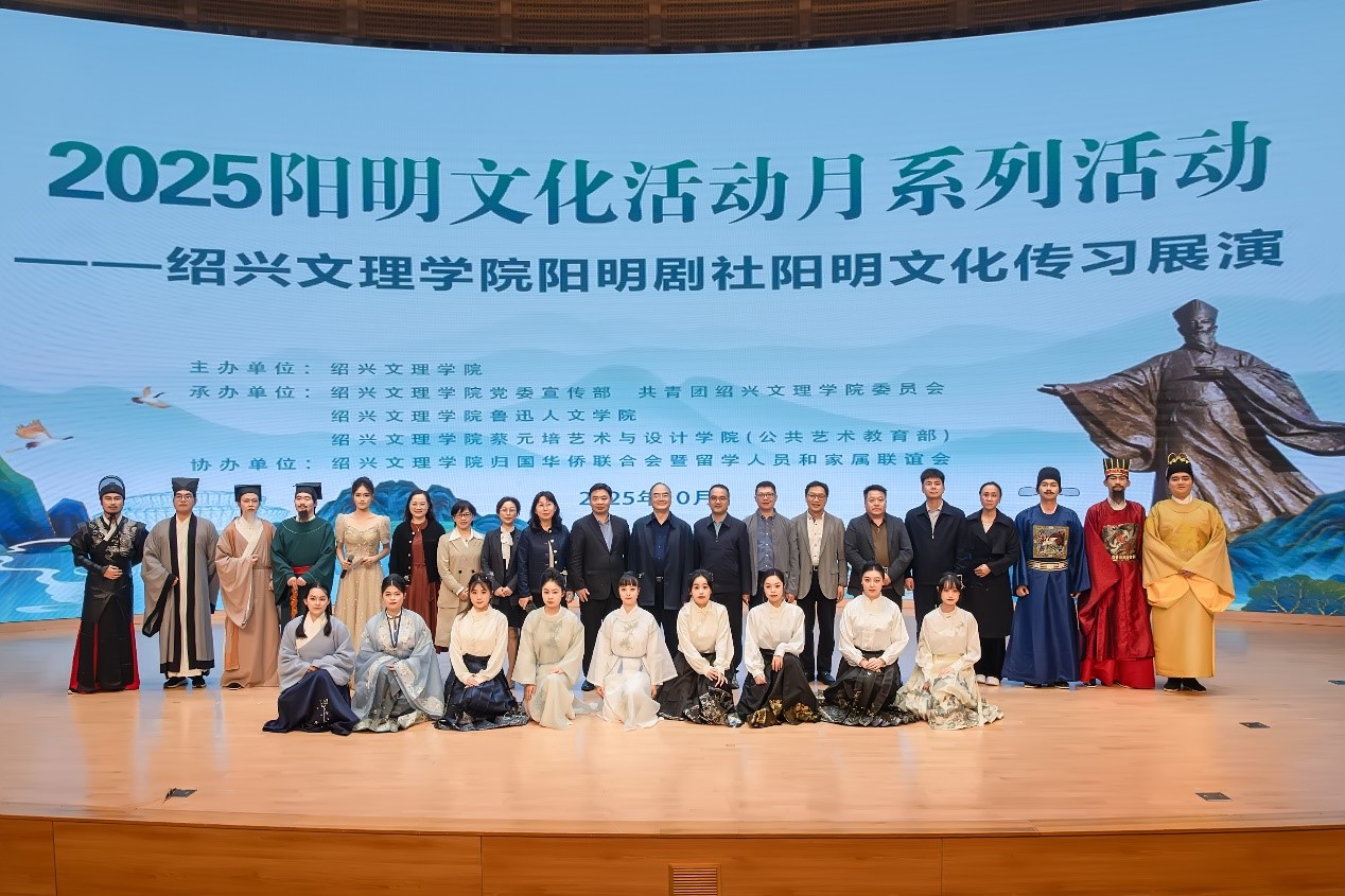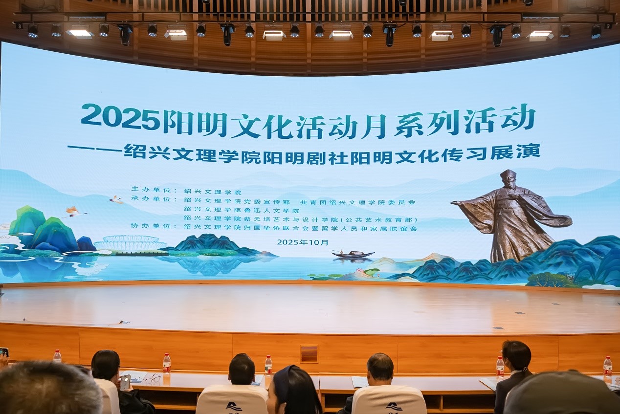 2025年10月30日晚,绍兴文理学院阳明剧社阳明文化传习展演在风则江大讲堂精彩上演。全国各地参加阳明心学大会的部分专家学者、第六届全国大学生阳明文化传习研讨营的青年学子,以及绍兴文理学院师生600余人共同观赏了这场融学术性、艺术性与思想性于一体的文化盛宴。校党委副书记黄坚出席活动。