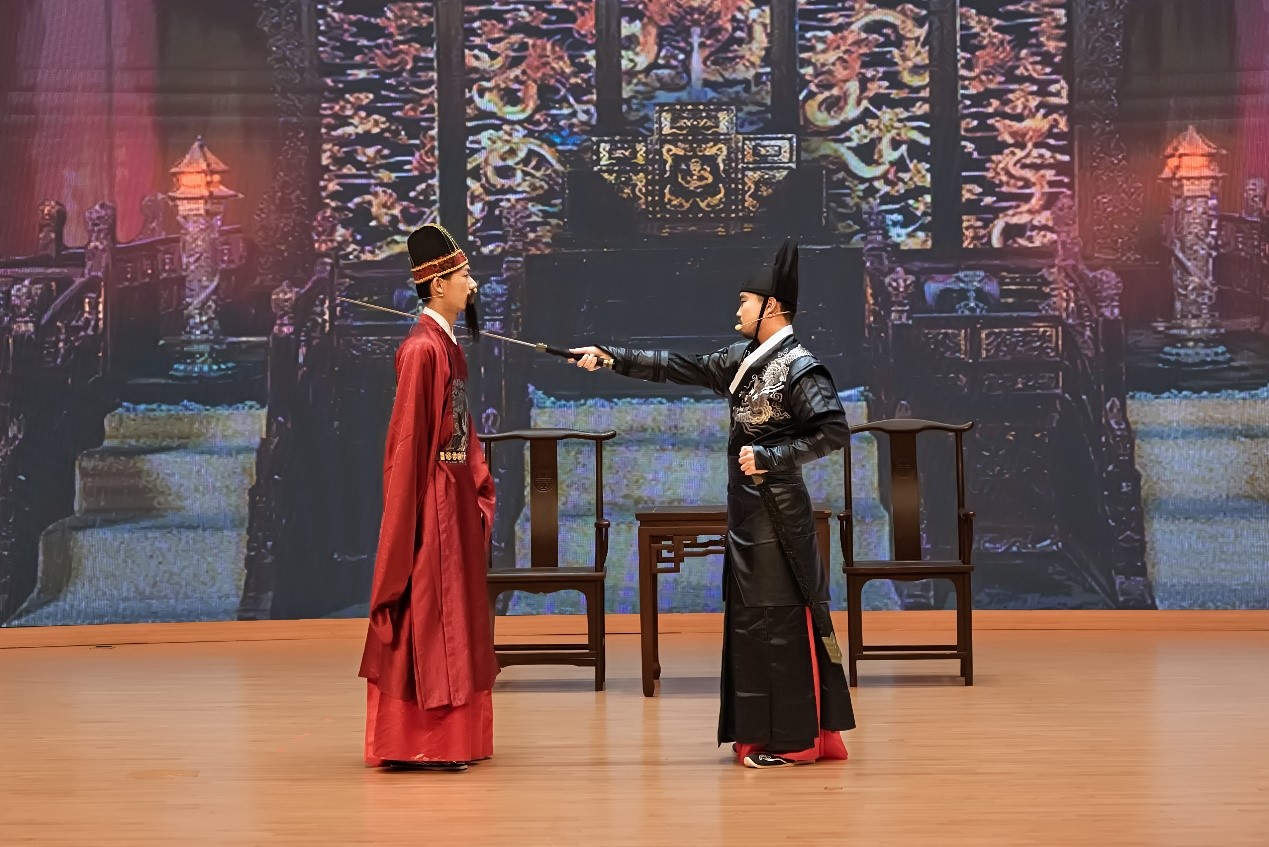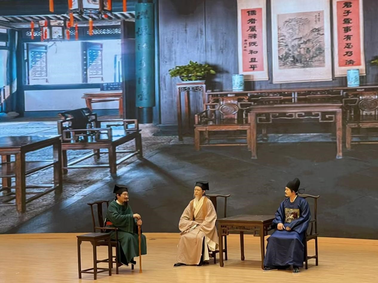 今年首演的原创话剧《阳明弟子浚河记》则别开生面,改编自阳明先生散文《浚河记》,讲述了弟子南大吉任绍兴知府期间,面对豪绅侵占河道之困局,在王阳明心学智慧的启迪下,以“事上磨练”的实践精神,巧妙劝导、唤醒良知,最终成功浚通河道、造福百姓的故事,生动演绎了“知行合一”的实践力量。