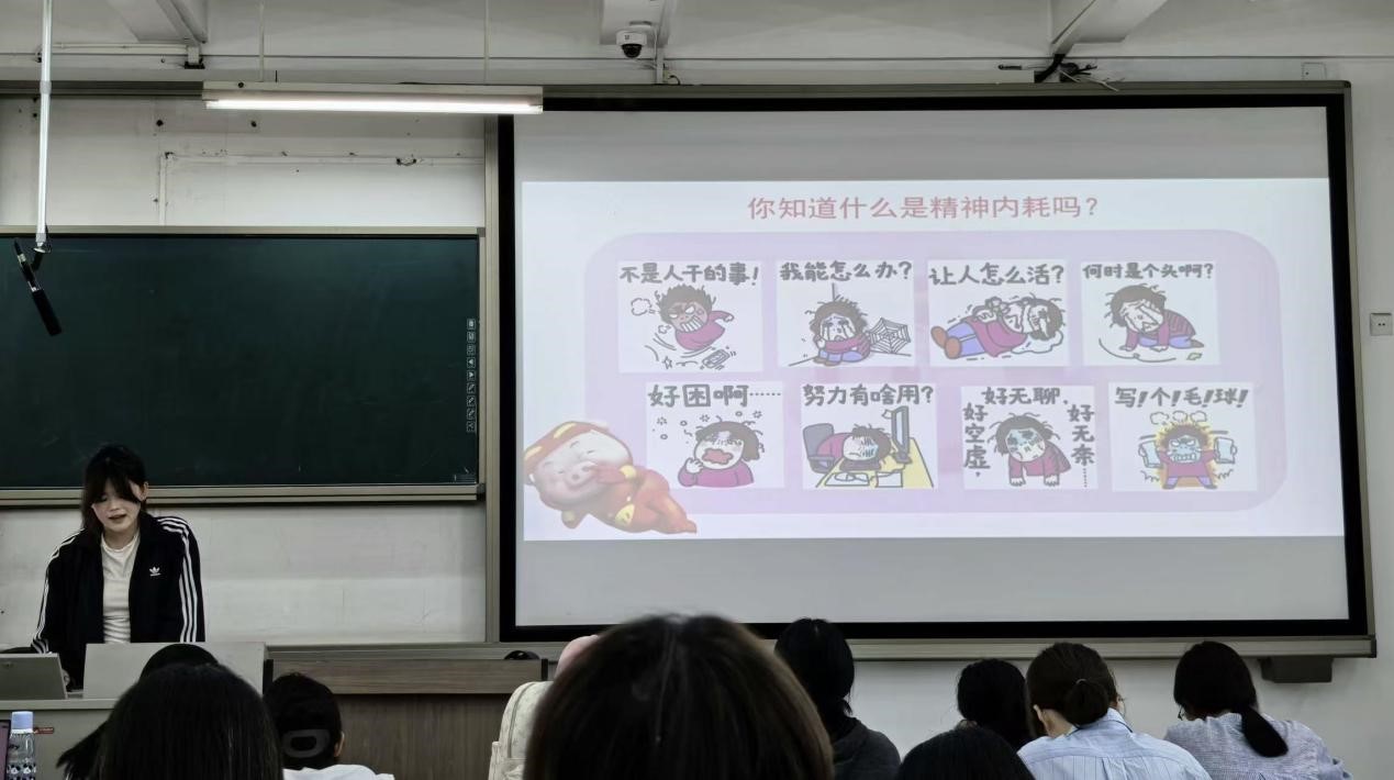 本次汉语言文学师范 253 班心理团辅以 “拒绝内耗,拥抱自我” 为主题展开。通过 GG Bond 形象的 PPT,心委叶怡嘉以诙谐方式为同学们讲解精神内耗的定义、常见症状及形成原因,让大家直观认识到其本质是内心的自我消耗;随后从心理健康、身体健康、工作学习三方面剖析精神内耗的危害,强调其可能诱发心理疾病、影响自我认知的问题;在同学们分享自身应对方法后,总结出察觉情绪、合理表达(如交谈、写日记等)、拥抱自我等应对措施。此次活动帮助大家明晰精神内耗的相关知识与应对之道,引导大家接纳自我、拒绝苛刻要求,以积极心态和良好习惯追求健康快乐的生活。