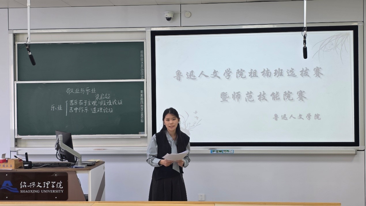 为传承百年师范优良传统,贯彻落实新时代教师队伍建设要求,锤炼我院师范生教学基本功,3月29日下午,鲁迅人文学院在南山校区举办祖楠班选拔赛暨师范技能院赛。