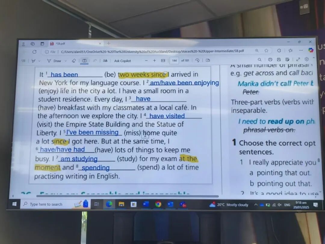 奥克兰大学课堂语法练习