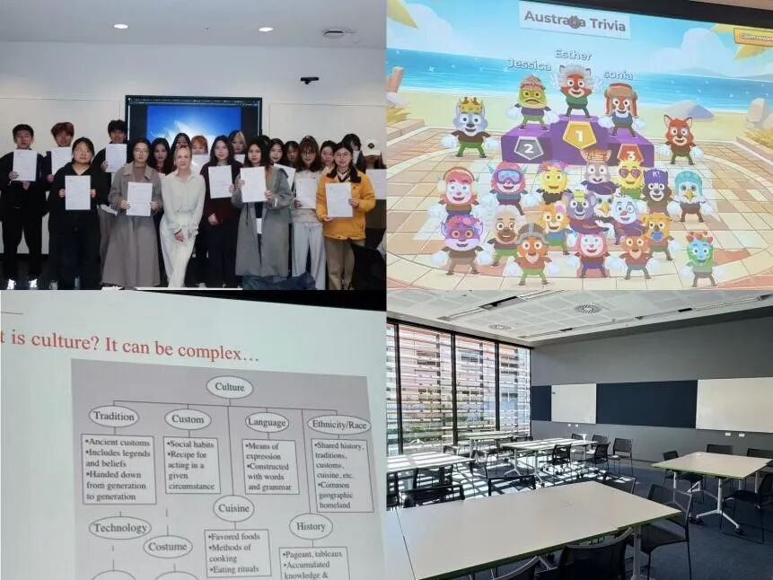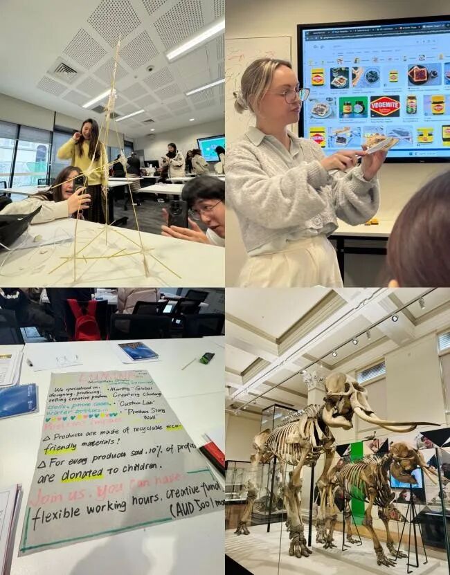 悉尼大学的访学课程让我对英语学习有了新的认识。课程包含学术写作、批判性阅读、小组研讨与现场展示四个模块,所有教学活动均围绕真实学术场景展开。学习期间,我们以小组为单位,围绕不同话题展开调研,最终通过现场汇报等形式完成各项任务。两位授课教师都能很好地调动课堂氛围,这让我们感觉在这里上课学习并不是枯燥乏味的,而像是加入了一场有趣的探险游戏。