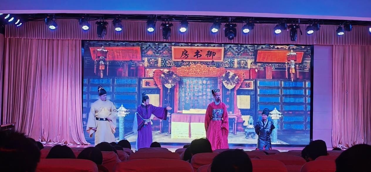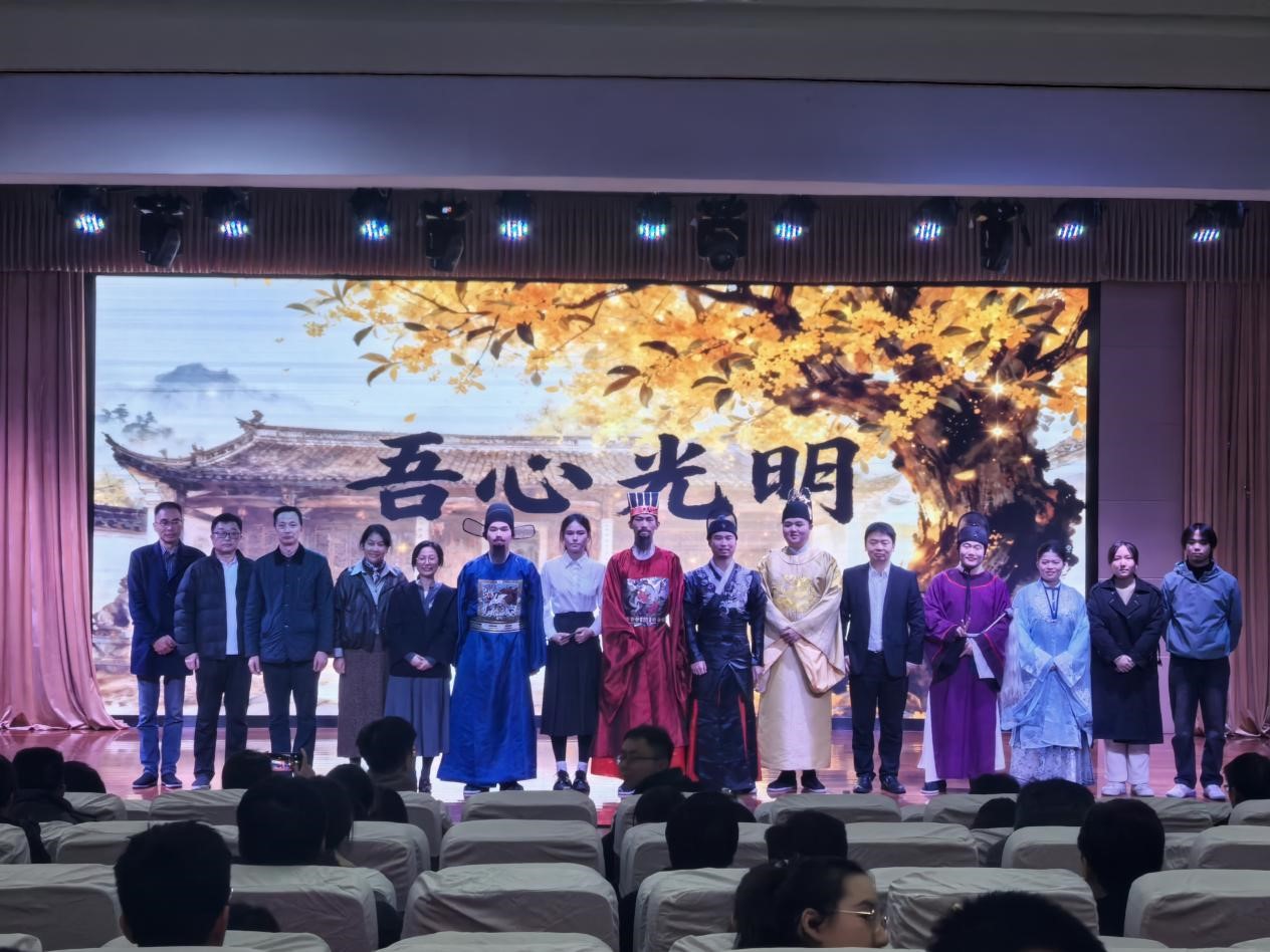11月17日晚,绍兴文理学院鲁迅人文学院与越城区委党校、浙江省稽山王阳明研究院通过积极挖掘和活化利用绍兴得天独厚的阳明文化资源,为新录用公务员培训班学员打造了一堂以阳明文化为主题的沉浸式教学课程。90多名新录用公务员共同观看了2025阳明心学大会宣传片,以及由鲁迅人文学院阳明剧社同学表演的情景朗诵《少年阳明》和原创话剧《吾心光明》。