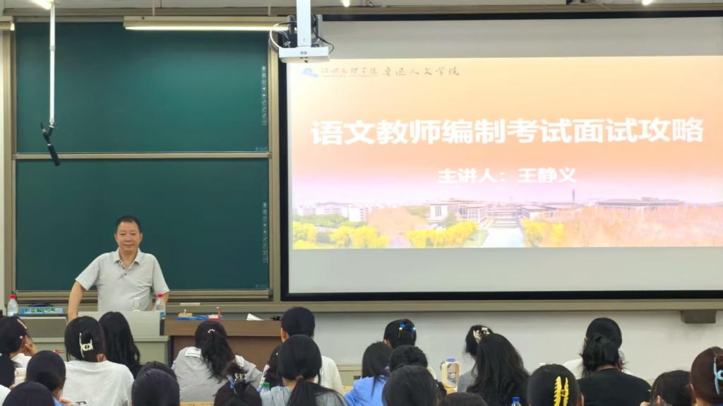 9月14日晚上,鲁迅人文学院在南山8-101开展语文教师编制考试面试攻略讲座。本次讲座由专业讲师王静义作主讲,我院意向语文教师编制考试的学生参加。