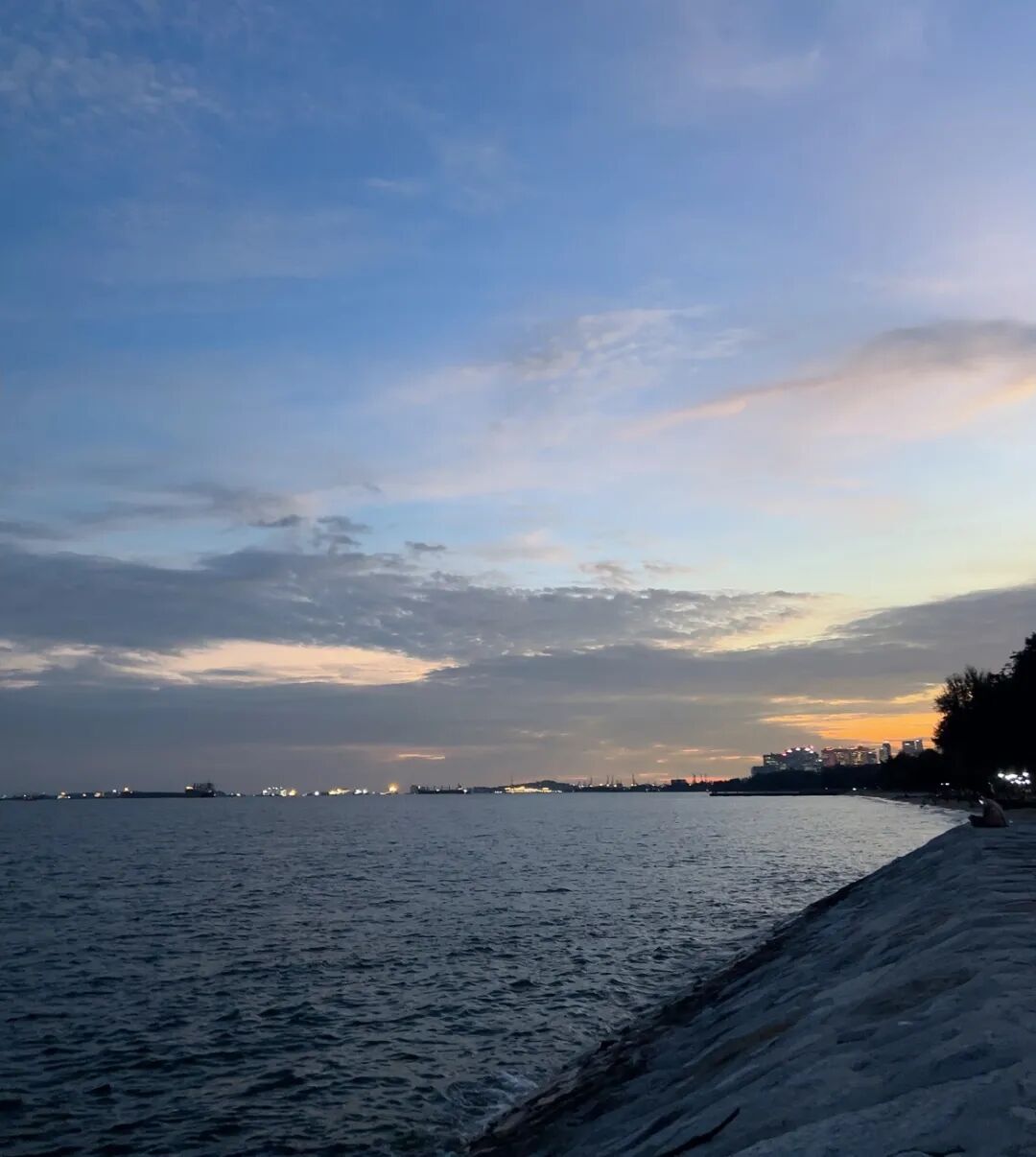 东海岸公园直面海洋,丝丝海风萦绕身边。时光一点一点消磨着,落日的余晖渐渐与海洋相融,远方船舶亮起了灯,闪出点点光芒,组成了一条新的天际线。